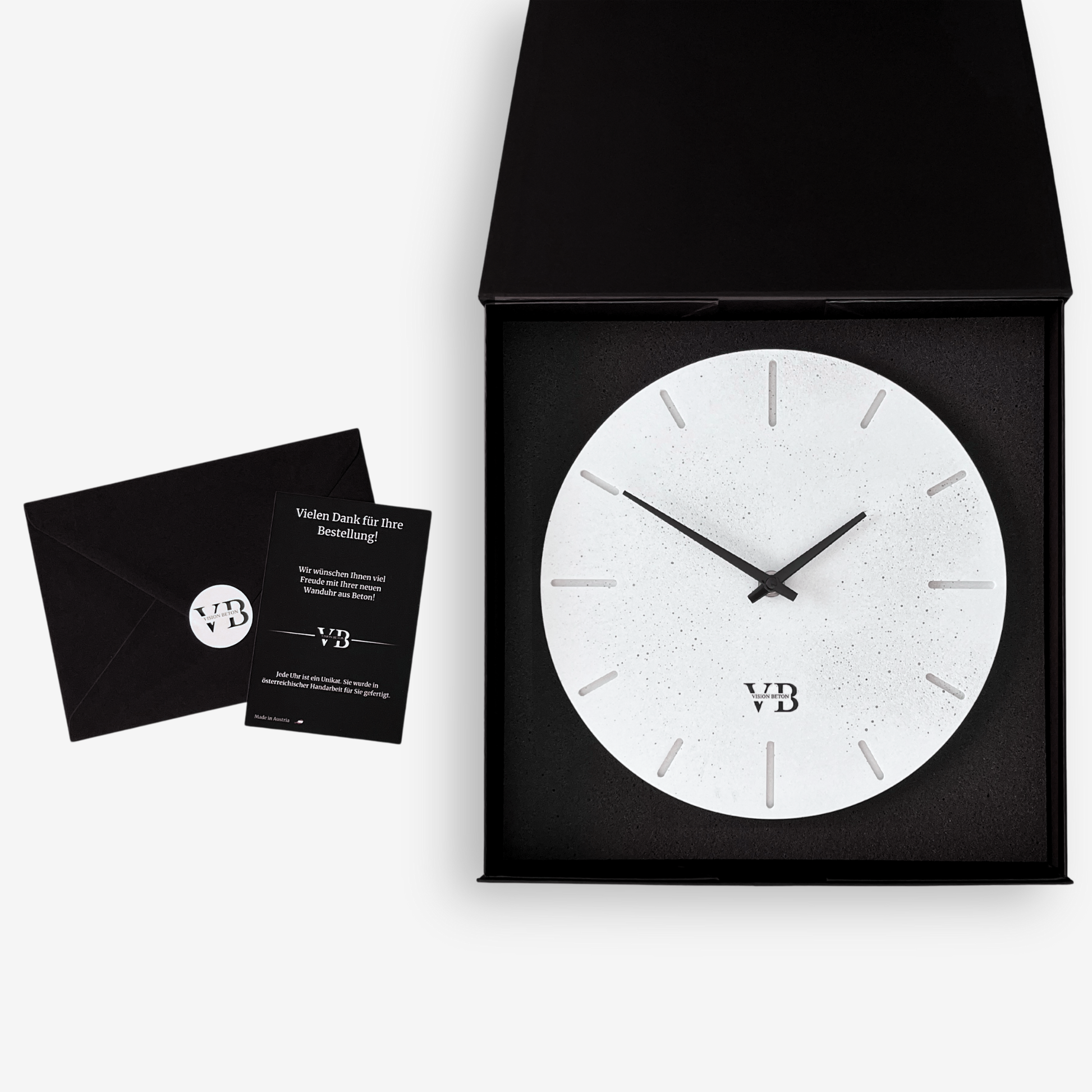 Mit unserer edlen Magnetbox wird das Auspacken Ihrer neuen Wanduhr zu einem besonderen Moment.