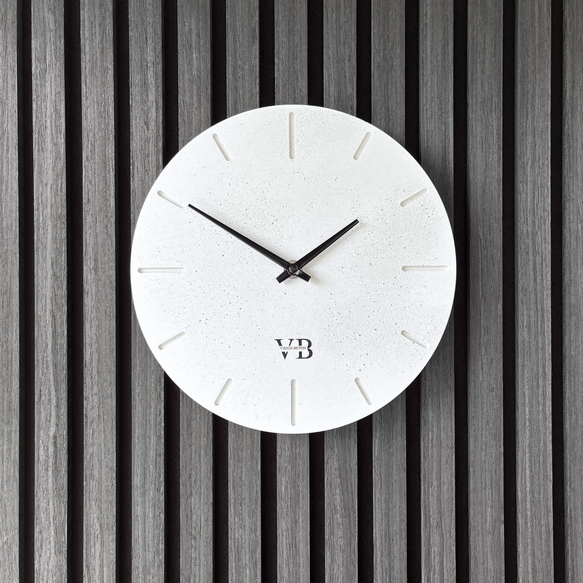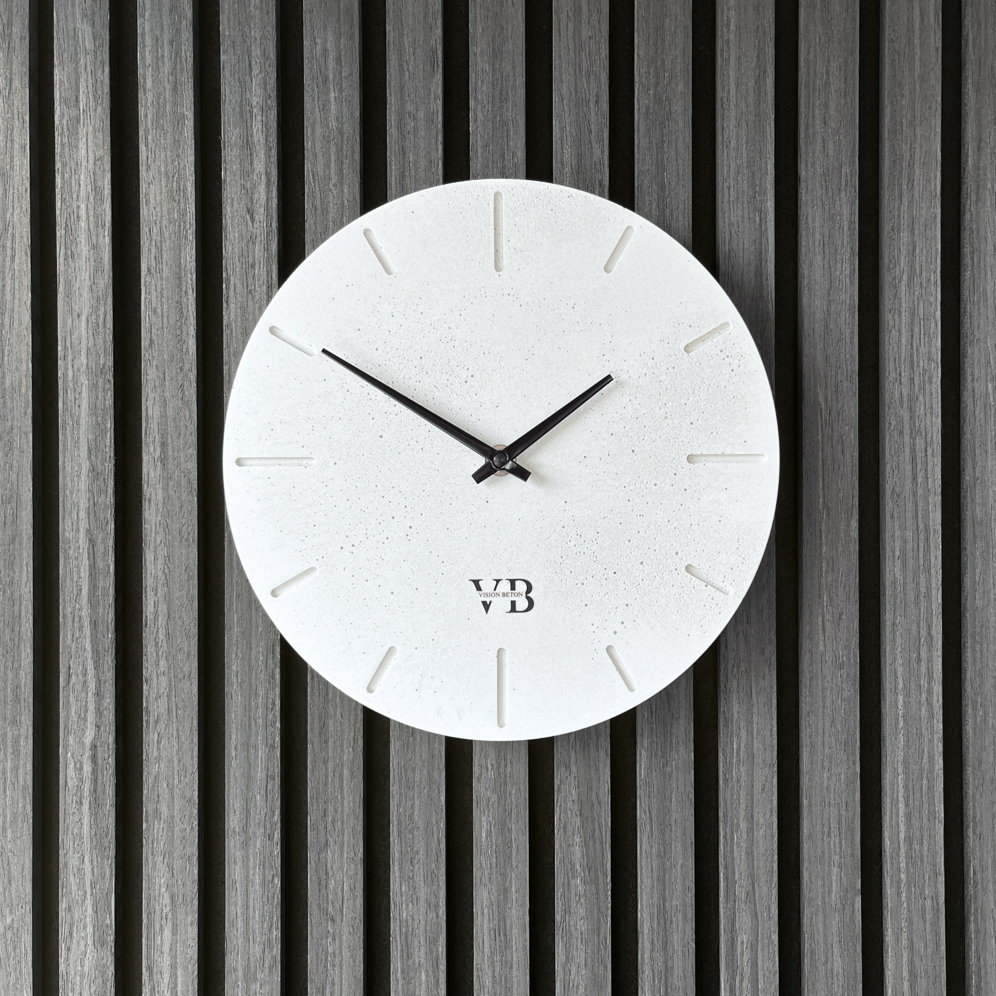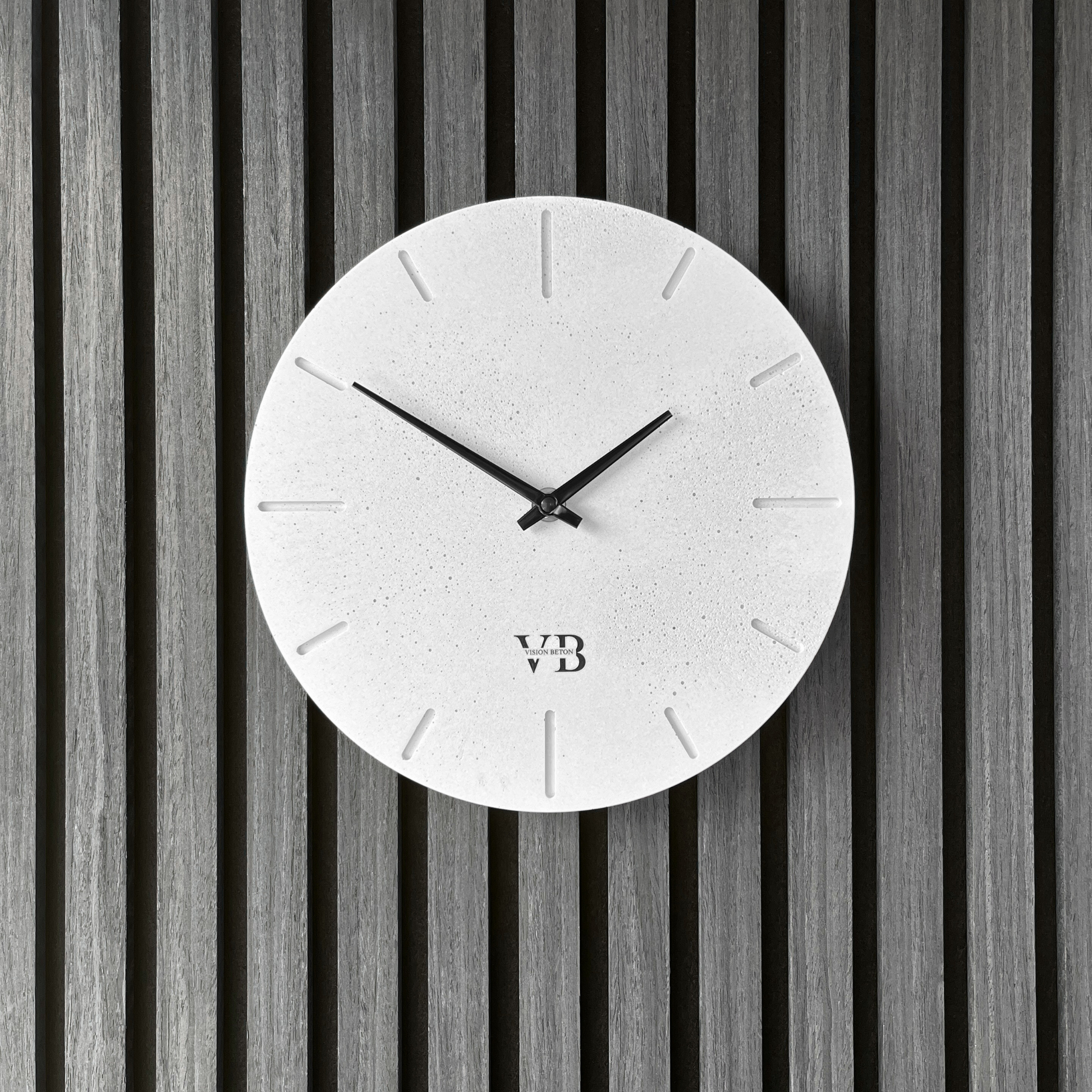 Jede Uhr wird in präziser Handarbeit aus Beton gegossen - so entsteht ein rustikales Design mit Charakter - keine ist wie die andere. Das macht unsere Uhr zu einem echten Unikat an Ihrer Wand.